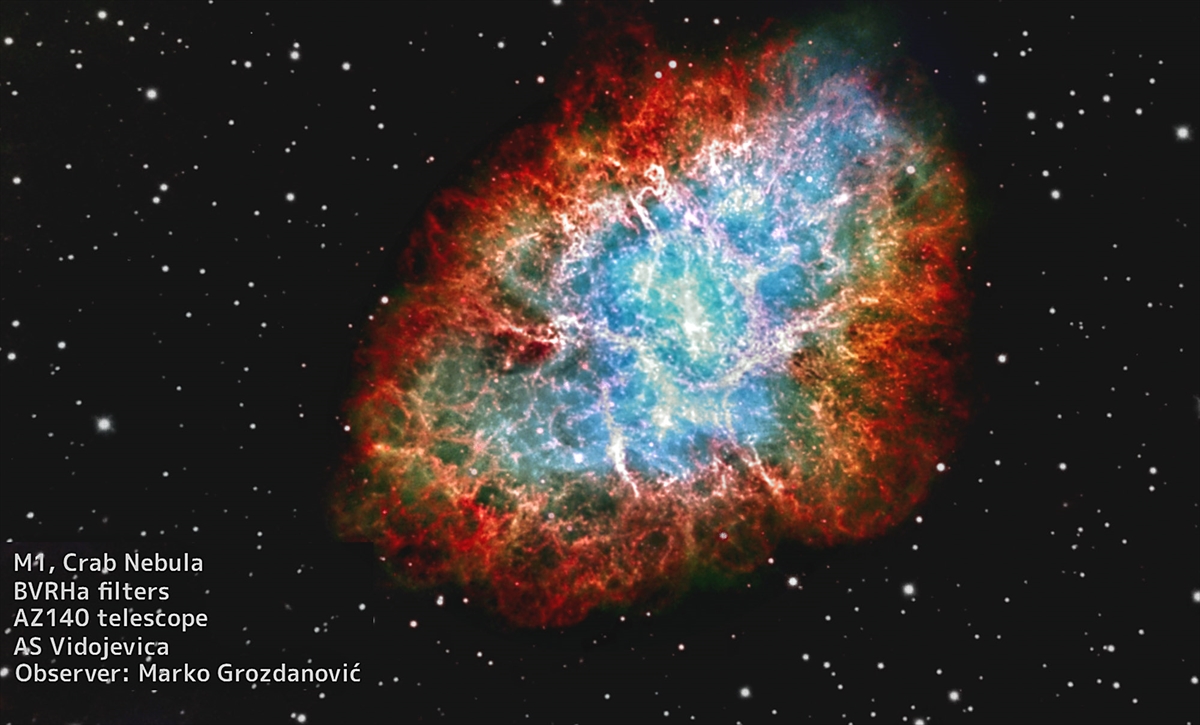 "Ono što teleskopima snimimo upotrebljava se da se naprave slike nebeskih objekata u živim veštačkim bojama. Zbog osjetljivosti prijemnika najbolje je da prijemnici budu monohromatski, odnosno da snimaju samo crno-bijelo. Onda možemo da snimimo slike u filterima na više talasnih dužina, pa da ih onda objedinimo u jednu sliku i veštački dodamo boje. To je način na koji možemo da vidimo raspored raznih materija unutar objekata, na primer, gasa, zvijezda i oblaka međuzvjezdane prašine", govori Vukotić.