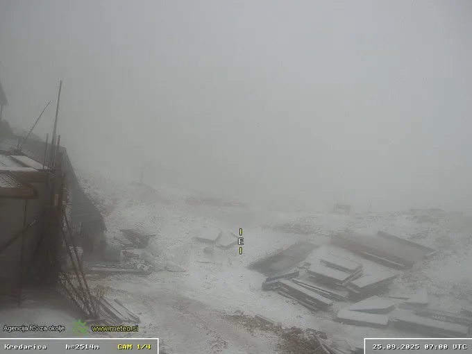 Prema podacima Agencije za zaštitu okoliša Slovenije, na najvišoj slovenskoj meteorološkoj stanici palo je oko centimetar snijega.