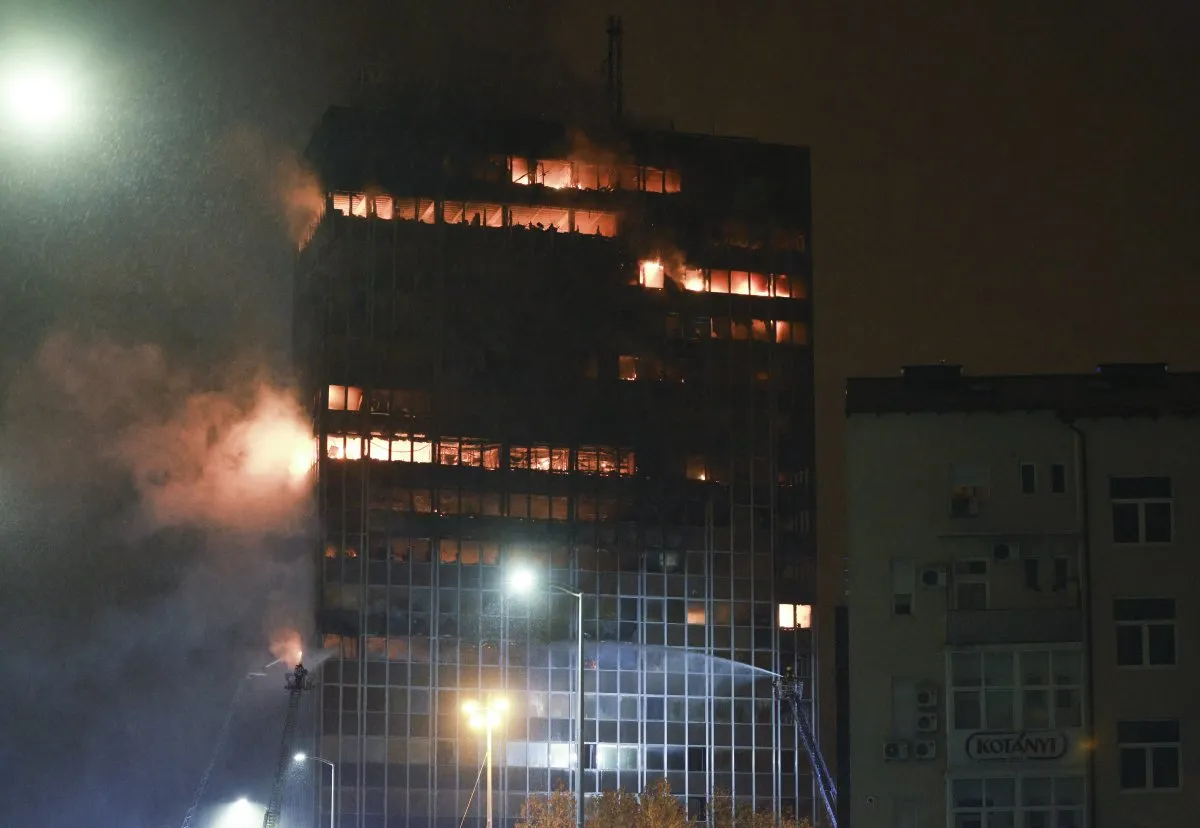 Požar u zgradi Vjesnika u Zagrebu (Izvor: TANJUG/ FOTO HINA/ Lana Slivar Dominić)