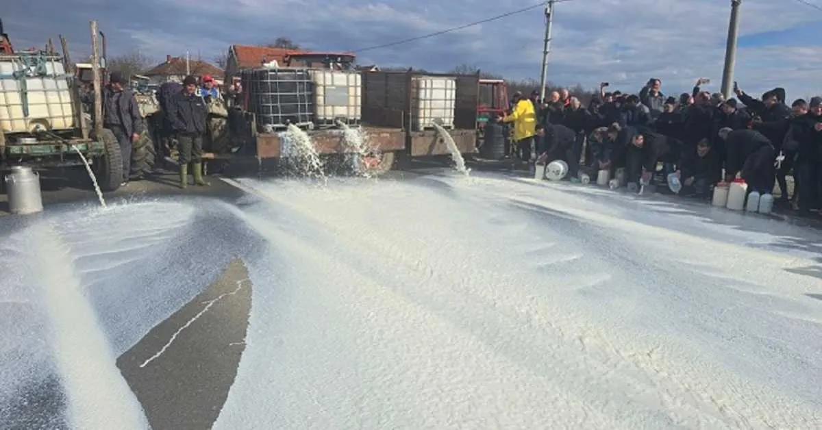 U Kniću su takođe, kako prenose mediji, mljekari organizovali protestno prosipanje oko 5.000 litara mleka.