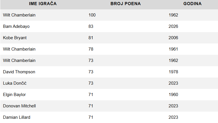 Adebayo je na parketu proveo 43 minute. Uzeo je 43 šuta i pogodio 20, a imao je čak 43 slobodna bacanja od kojih je 36 pogodio. To je novi rekord NBA lige.