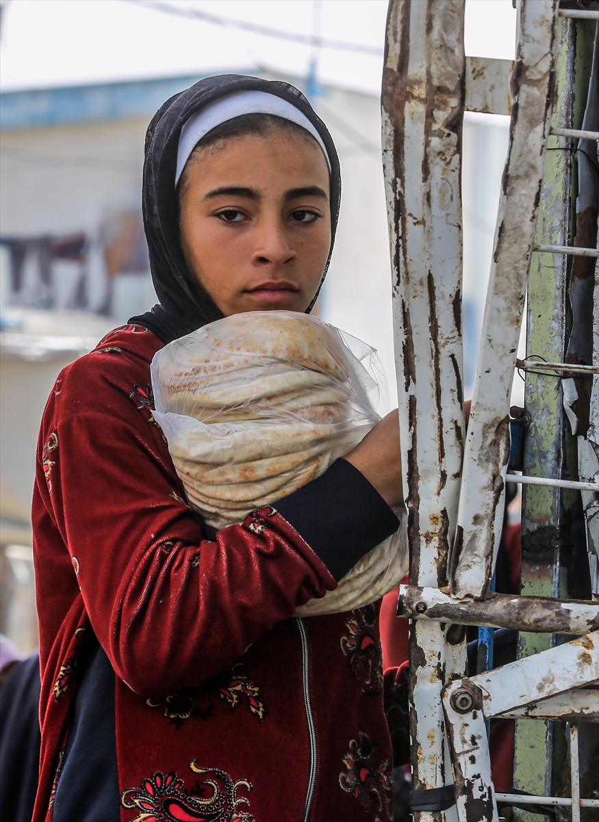 Palestinci, uključujući djecu, stoje u dugim redovima kako bi primili hljeb koji dijeli humanitarna organizacija u Khan Yunisu, na jugu Pojasa Gaze, javlja Anadolu.