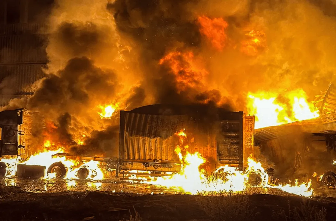 Veliki požar izbio je i u lukačkom infrastrukturnom kompleksu, gdje su kontejneri s biljnom uljem, vozila i drvna pelet goriva bili zahvaćeni plamenom.