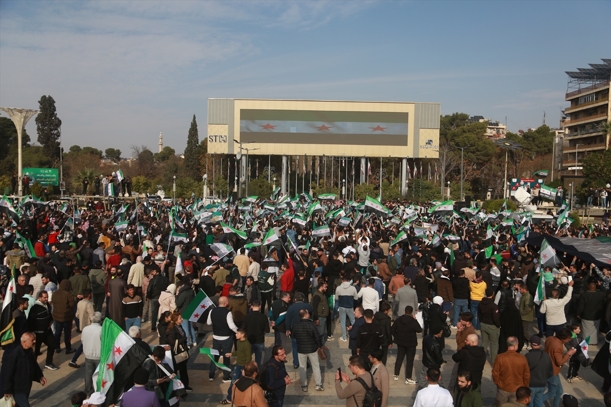 U glavnom gradu Damasku veliki broj ljudi okupio se na trgu Ummajadin, mašući sirijskim zastavama i uzvikujući slogane koji pozivaju na jedinstvenu i demokratsku budućnost.