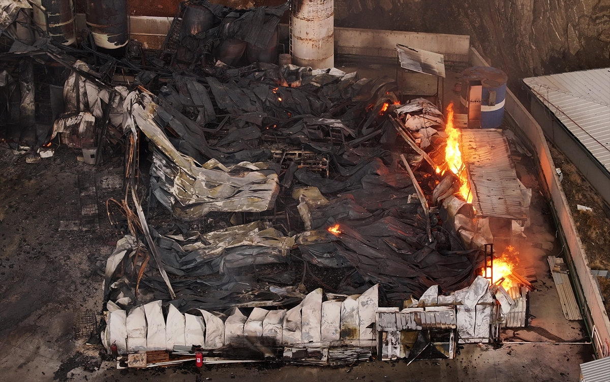 Snimci drona pokazali su gust dim koji se uzdiže iz postrojenja, dok su ekipe hitnih službi radile na obuzdavanju vatre.