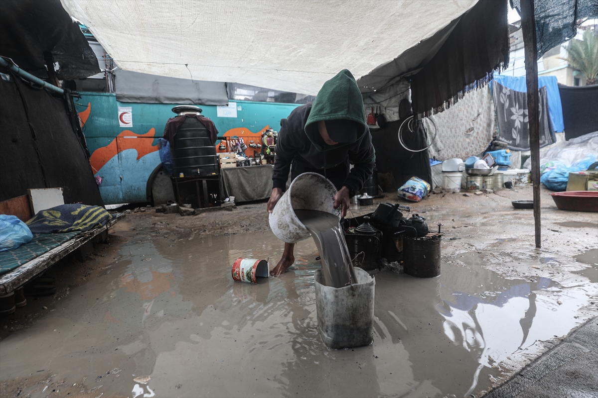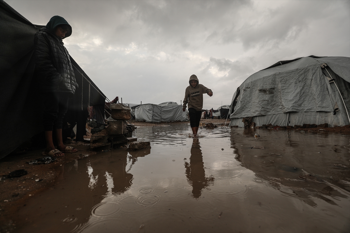Šatori su poplavljeni nakon što je kiša neprestano padala od ranih jutarnjih sati do kraja noći, pogoršavajući uslove porodica koje su već raseljene zbog dvogodišnjeg genocida koji je Izrael provodio, prema izvještaju dopisnika Anadolua.