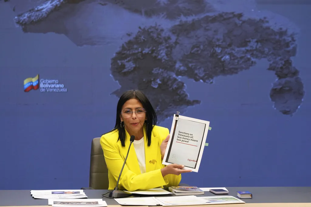 „Kunem se komandantom Hugom Chavezom“, rekla je Delcy Rodriguez pred Nacionalnom skupštinom Venecuele u glavnom gradu Karakasu, žaleći zbog hapšenja Madura i njegove supruge Cilie Flores.