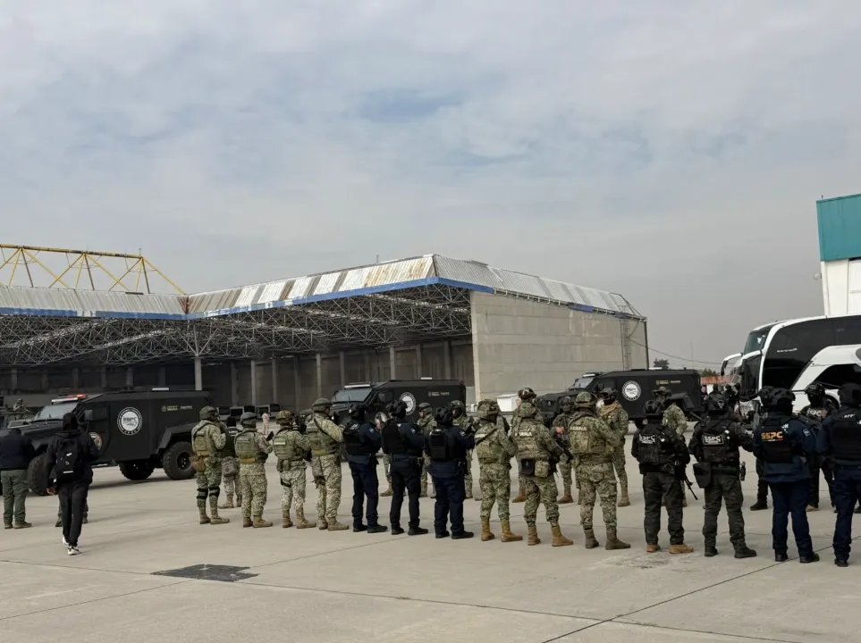 Fotografije koje je ministar sigurnosti Meksika Omar García Harfuch objavio na društvenoj mreži X prikazuju redove naoružanih pripadnika meksičkih sigurnosnih snaga pored aviona, dok oklopna vozila, za koja se pretpostavlja da prevoze osumnjičene, pristižu na aerodrom.