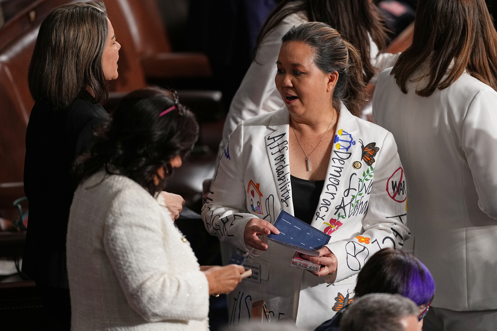 Drugi demokrati su uputili tiše poruke protesta. Američka zastupnica Jill Tokuda, demokratkinja s Havaja, nosila je bijelu jaknu s natpisima poput "pristupačnost" i "zdravstvena zaštita".
