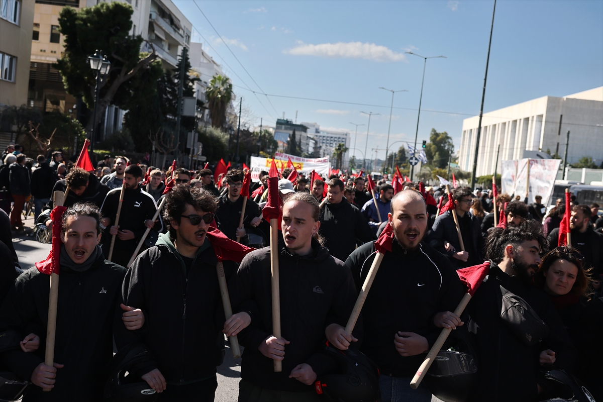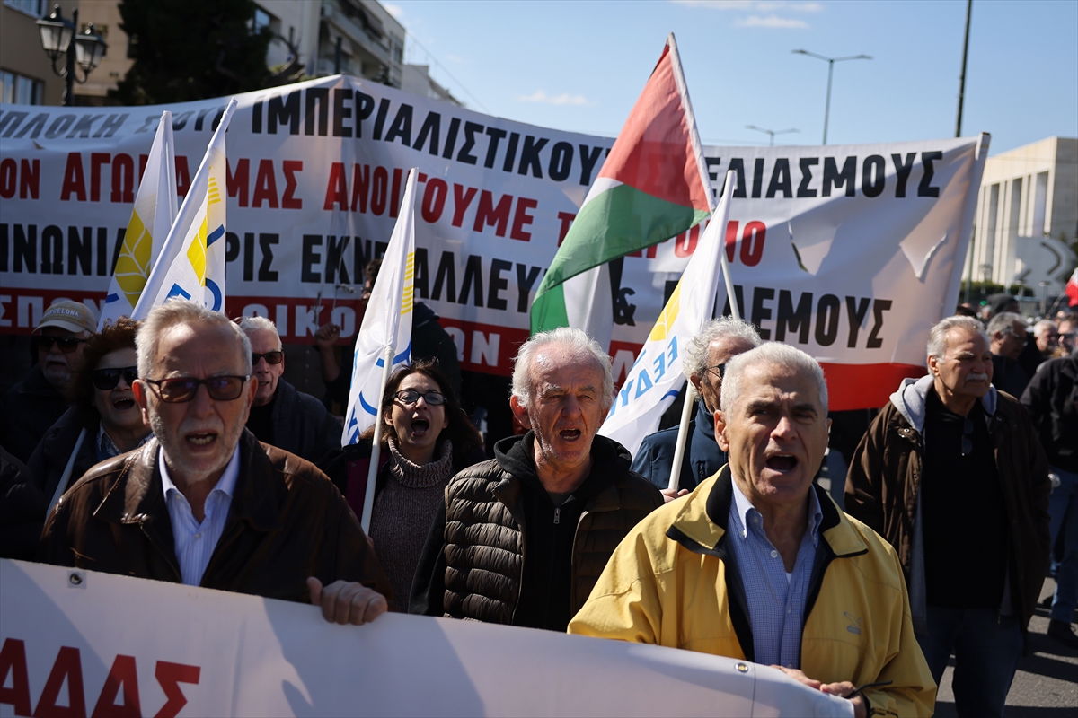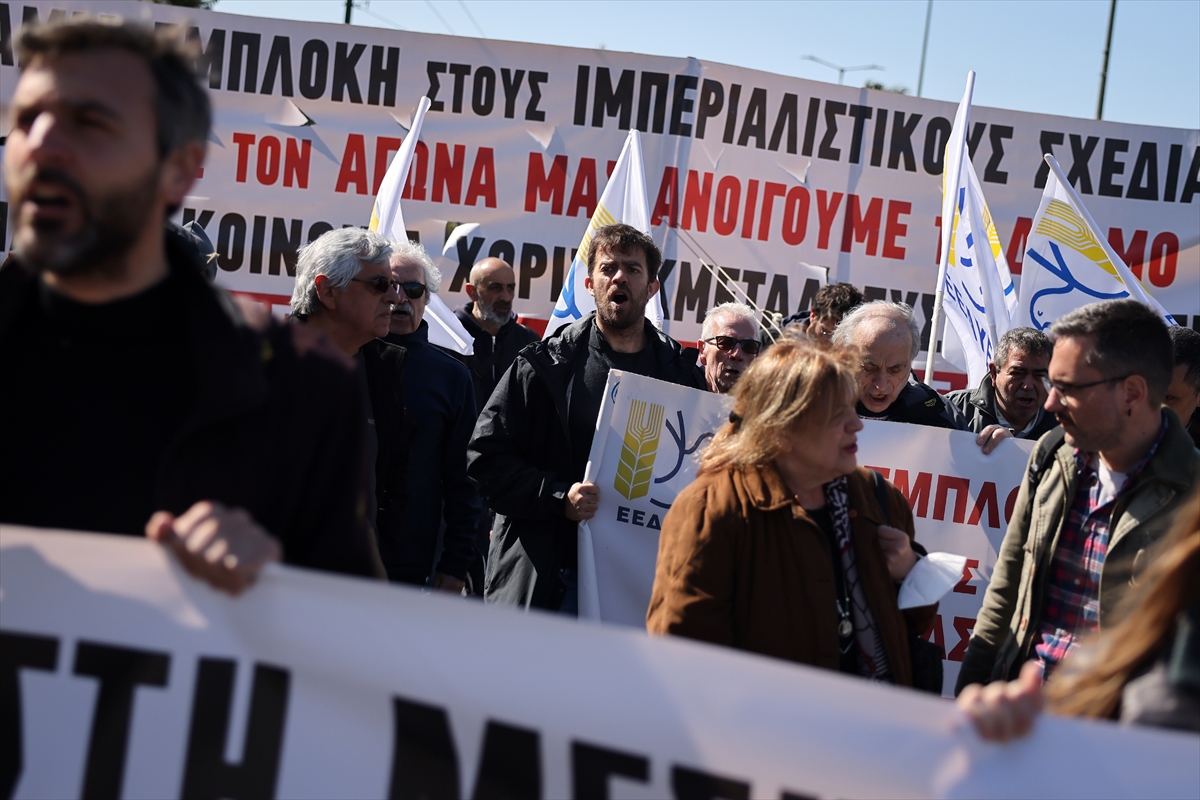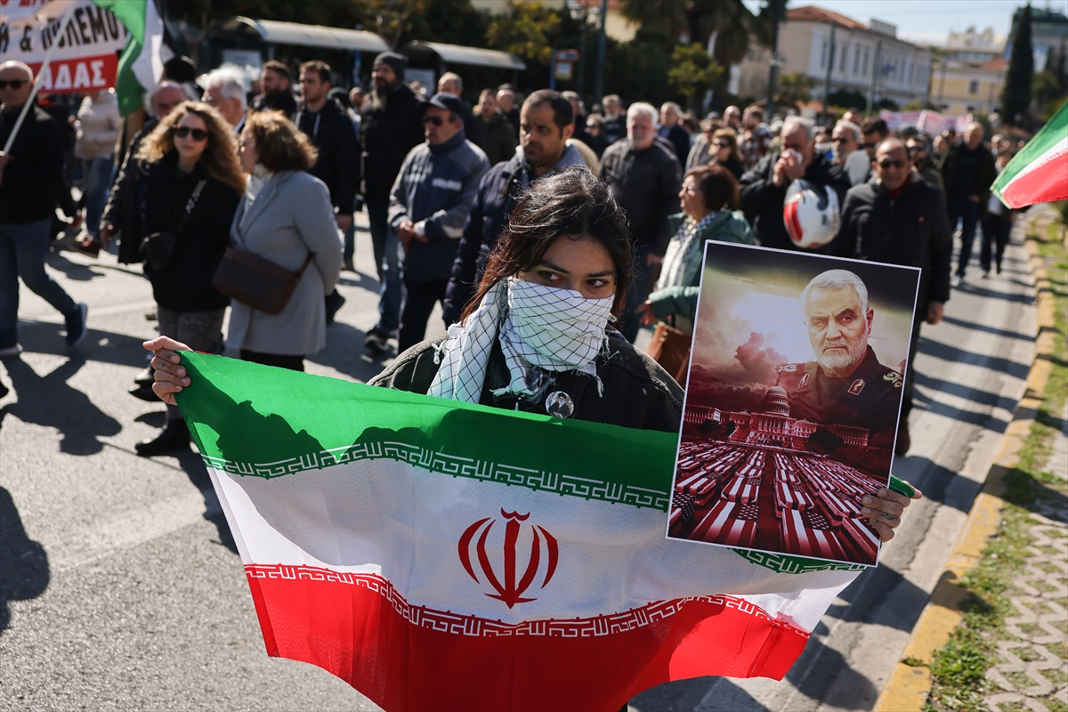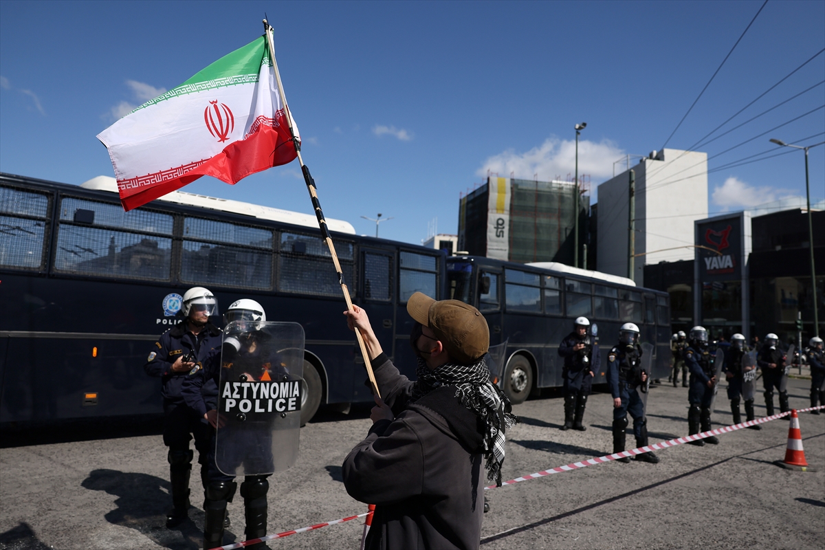 Demonstranti, uglavnom povezani s Grčkom komunističkom partijom, nose transparente i plakate na kojima piše "Ruke dalje od Irana" i "Zatvorite bazu Souda".