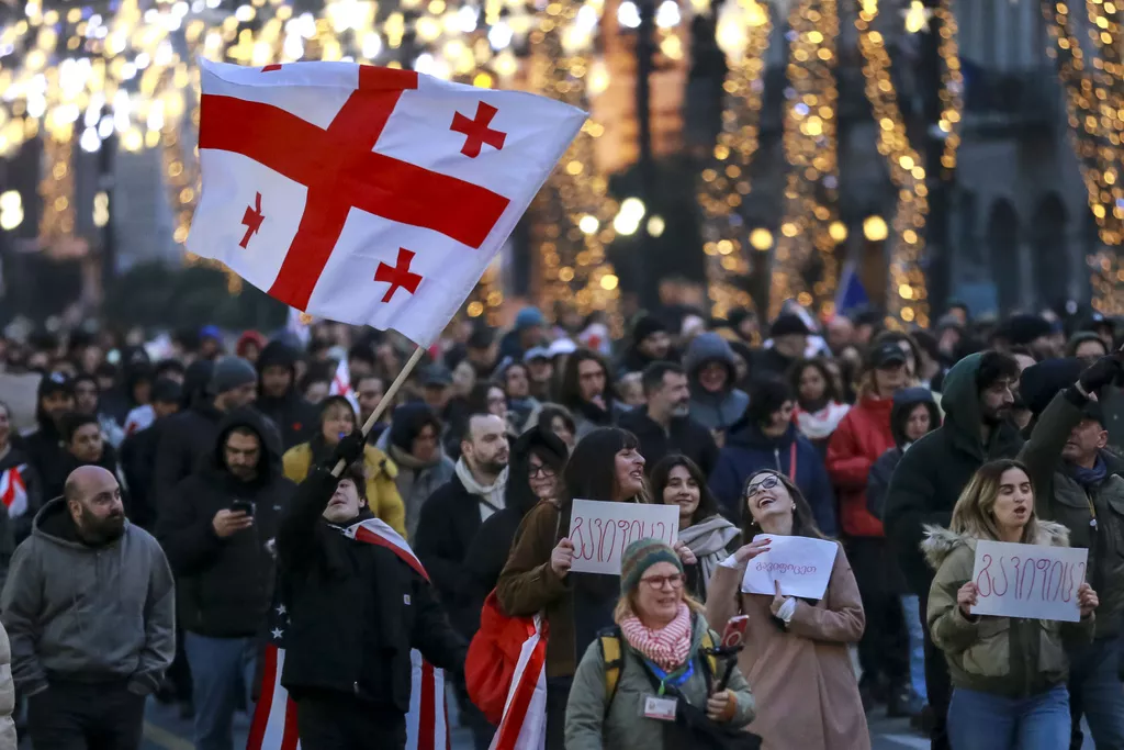 TrosatnI štrajk širom zemlje u Tbilisiju, Gruzija, u srijedu, 15. januara 2025. (Izvor: AP/Zurab Tsertsvadze)