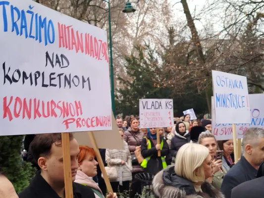 Now playing Next Aktuelno Protest zbog konkursa: Dio nastavnika nezadovoljan, Vlada KS odbija da ga poništi